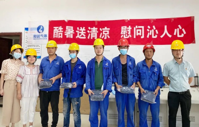 潛江項目投產(chǎn)在即,時間緊、任務(wù)重,壓力大,受公司黨支部委托,和遠(yuǎn)氣體黨支部組織委員向松庭一行前往潛江和遠(yuǎn)15000空分及年產(chǎn)7萬噸食品級液氮項目現(xiàn)場,為在高溫下堅守一線的工作人員送去組織的關(guān)心。