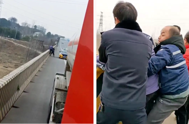 12時(shí)45分左右,車(chē)輛行經(jīng)318國(guó)道枝江董市鎮(zhèn)新河口大橋時(shí),駕駛員余興華、押運(yùn)員周華看到一位老人正跨..